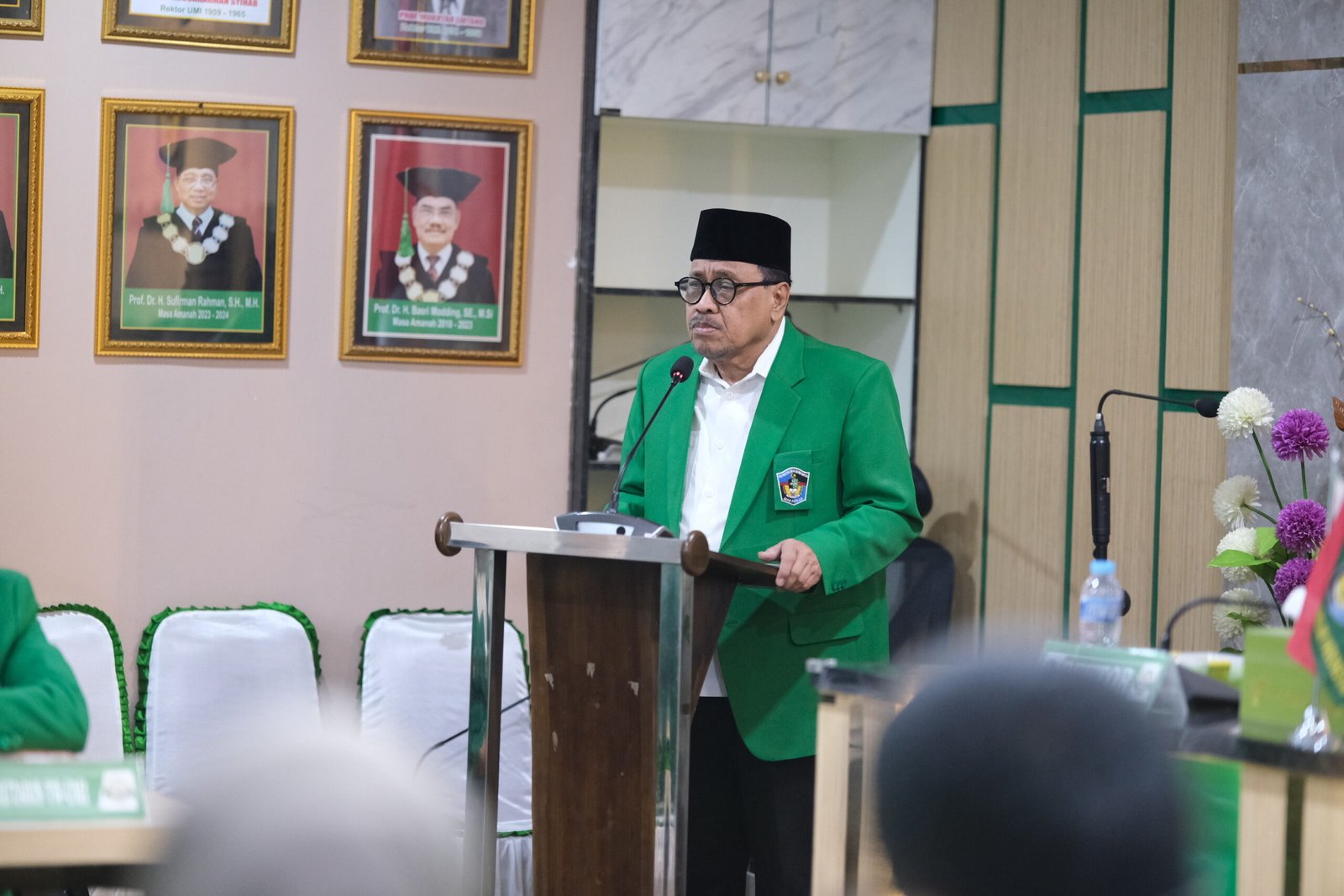 Acara ini turut dihadiri oleh pimpinan umum Wahdah Islamiyah, Dr. K.H. Muh. Zaitun Rasmin, Lc., M.A., serta ulama asal Palestina, Syaikh Dr. Ahed Ahmad Abu Al Atha.
