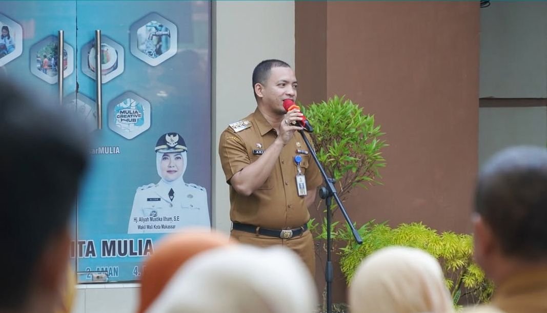 Dayadigital.id, Makassar – Camat Tamalate, Muhammad Aril Syahbani Kahar, S.IP, memimpin langsung kegiatan Apel Pagi di halaman Kantor Kecamatan Tamalate, Jalan Danau Tanjung Bunga, Kelurahan Maccini Sombala, Kecamatan Tamalate, Kota Makassar, pada Senin (13/4/2026).
